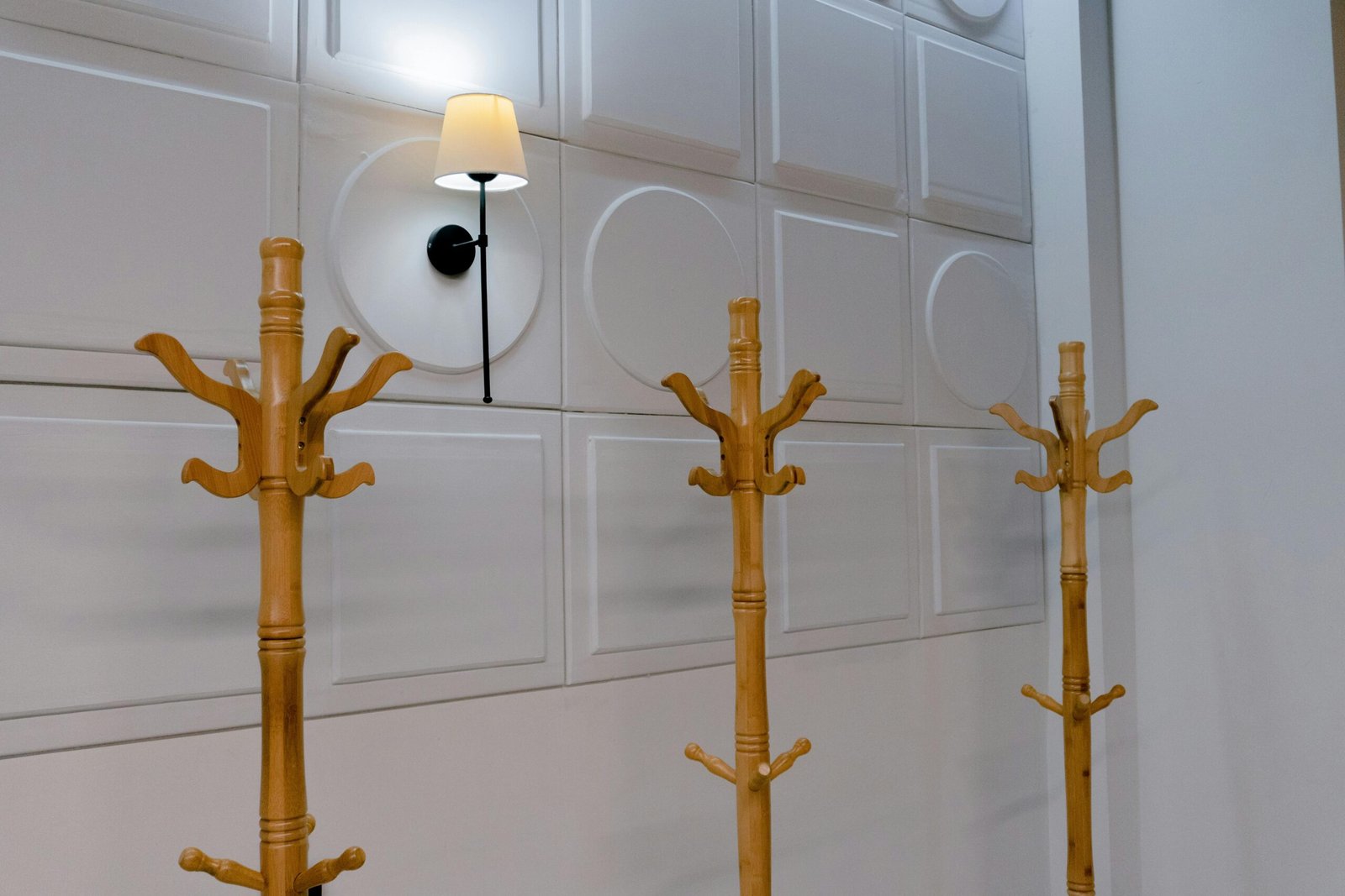 Les modèles en bois clair, avec des formes simples et fonctionnelles, s’intègrent parfaitement dans cette ambiance. Ils apportent une touche chaleureuse sans alourdir l’espace. Le porte manteau devient un élément discret mais essentiel dans la création d’un intérieur apaisant et lumineux.